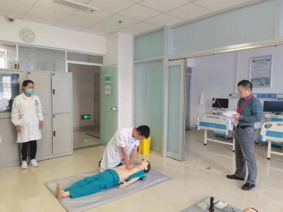 评估汇报会后,专家组通过查阅资料、实地走访基层实践基地、技能实训中心、图书馆、示教室、学生宿舍等;现场考核及提问、召开座谈会等方式,抽查培训科室教学查房、病例讨论、科室台账等;抽取学员技能考核、门诊接诊、书写大病历、临床技能操作、“一对一”访谈相关部门负责人等,通过各种方式、多维度、全方位对医院基地建设概况、保障措施、过程管理、培训质量、师资队伍建设、经费使用等方面进行为期2天客观全面的深度评估,并严格按照评估指标赋分。