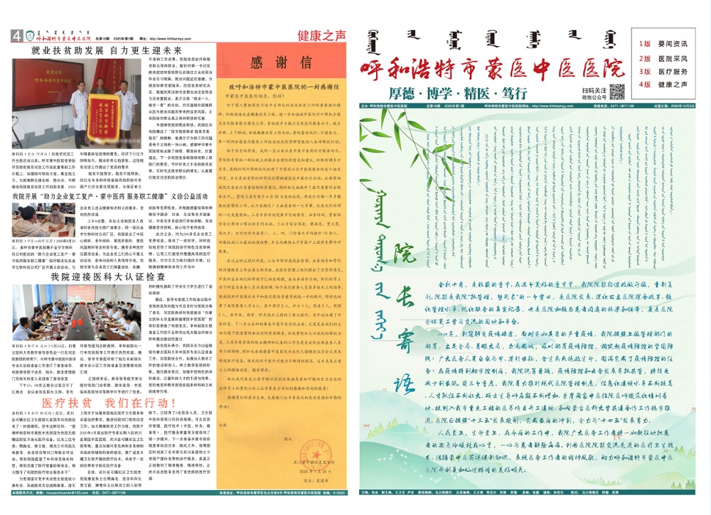 呼和浩特蒙中医院2020年第一期院报