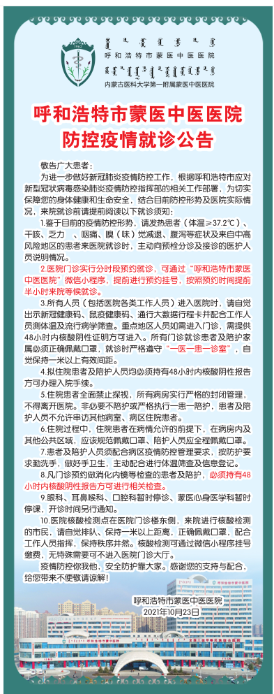 呼和浩特市蒙中医院互联网医院上线啦
