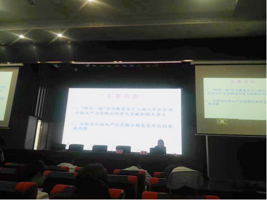 为进一步提高中文色情网 党员干部、广大职工的政治思想理论水平,结合“两学一做”学习要求,加强基层支部建设,推进全面从严治党。中文色情网 于4月27日下午,邀请了呼市党校魏岚老师为全体党员、临床科室环节干部及全体行政人员做了题为“推进全面从严治党、做合格党员”的主题党课。魏老师从“两学一做”学习教育及十八届六中全会为全面从严治党做出的重大贡献和伟大意义”与“为推进全面从严治党做合格党员作出的重要部署”两方面为主要内容,深刻、详细的进行了剖析。