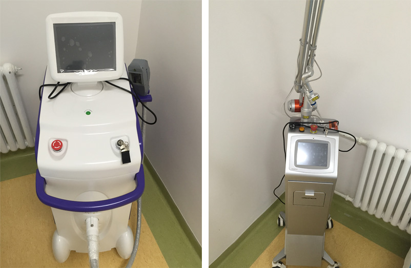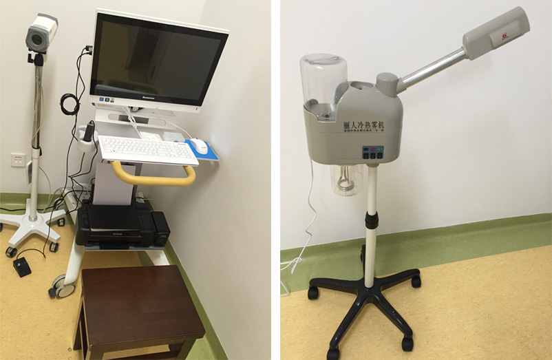 科室现有职工3名,副高职称以上人员1名,主治医师1名,护士1名。设有中医诊室,中西医结合诊室,处置室,医学美容治疗室,真菌检测及皮肤镜室等。目 前配置设备及相关治疗如下:1、二氧化碳点阵激光治疗仪(除皱、皮肤提拉美容、痤疮疤痕、雀斑、老年斑、红血丝等);2、微波治疗仪(治疗各种疣、皮赘、 部分色斑及良性皮肤肿瘤如色素痣、皮脂腺痣、汗管瘤、化脓性肉芽肿);3、GX-III型多功能电子治疗仪(皮肤赘生物、血管瘤等);4、液氮冷冻治疗 (各种疣、化脓性肉芽肿、脂溢性角化、结节性痒疹、瘢痕疙瘩、表浅良性肿物);5、窄波UVB光疗仪(银屑病、白癜风等多种皮肤病的辅助治疗)6、 308nm准分子治疗仪(白癜风、银屑病及五十多种皮肤病);7、冷喷治疗机、红外线治疗仪、红蓝光治疗仪(过敏性皮炎急性期、皮肤感染、慢性皮肤溃疡、 带状疱疹急性期等);8、局部封闭治疗(瘢痕疙瘩、结节性痒疹、斑秃等);9、真菌显微镜检测系统(真菌、螨虫、疥虫和阴虱的检查);10、皮肤镜检测系 统(配合皮肤良性肿瘤及玫瑰糠疹、银屑病、扁平苔藓、脂溢性角化、斑秃、角化棘皮瘤、黄瘤病、鲍温病、各类疣等等多种皮肤病的诊断);
