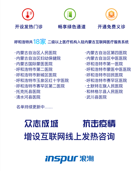 为增加市民咨询就诊的便利性,降低新型冠状病毒传播风险,从即日起,呼和浩特市卫生健康委组织我市18家医院入驻内蒙古互联网医疗服务系统,并率先开通了我市互联网发热咨询门诊,市民足不出户就可以通过手机实现与医院专科医生直接沟通,欢迎有需要的市民向各医院医生咨询问诊,该门诊目前实行免费咨询,提供诊疗建议。